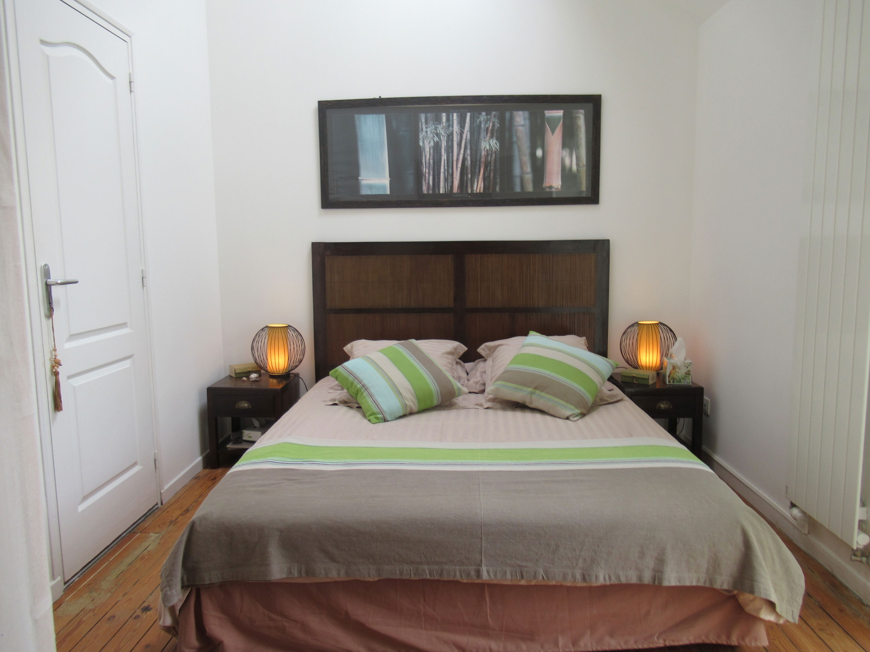 450 m² großer, nach Süden ausgerichteter Garten mit Terrasse mit Gartenmöbeln + 2 Liegestühlen und 4 Liegestühlen - Sonnenschirm - Grill. WIFI-VERBINDUNG