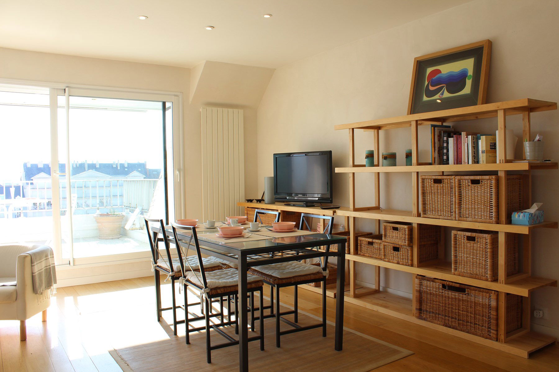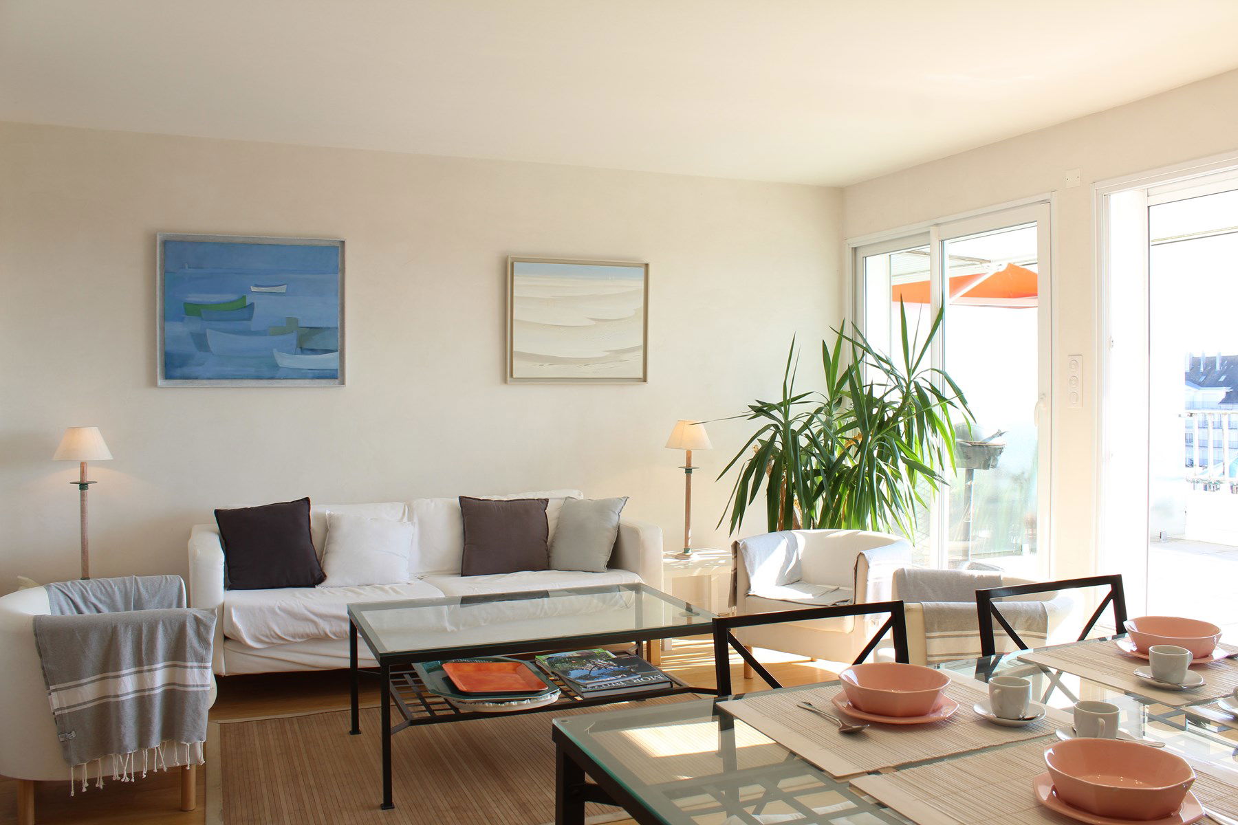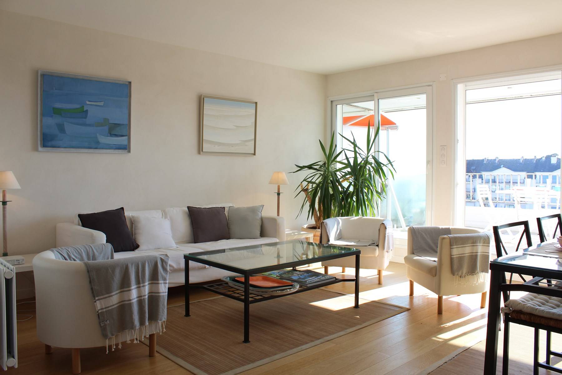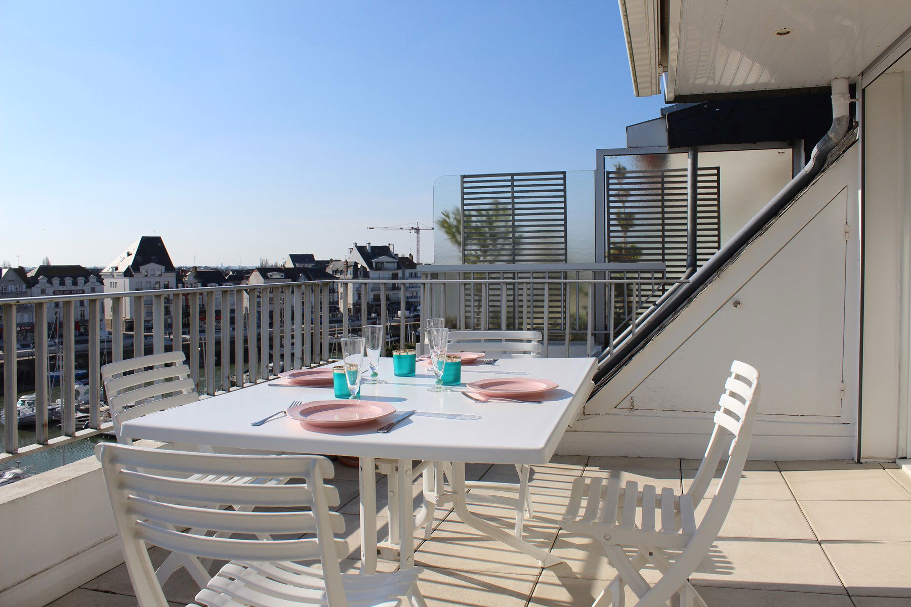 La Baule (44) - Blick auf Port du iguen - Residenz "KER IDO" T5 - 5. Etage mit Aufzug - ca. 108m² - bis zu 8 Personen Im 5. und letzten Stock mit Aufzug in einer Residenz gegenüber dem Hafen von iguen gelegen, befindet sich dieses schöne Die Maisonette-Wohnung mit zwei Schlafzimmern besteht im ersten Stock aus einem großen Wohnzimmer mit einer großen Westterrasse mit Blick auf den Hafen, einer ausgestatteten und ausgestatteten separaten Küche, einem Schlafzimmer mit Doppelbett, einem Badezimmer, einem Flur mit großem Schrank / Kleiderschrank und separates WC. Auf der 2. Ebene befinden sich 3 Schlafzimmer mit je einem Doppelbett, ein Badezimmer mit WC, ein Flur mit Garderobe/Regal und ein als Waschraum dienender Raum mit Waschmaschine und Trockner. Die Unterkunft verfügt über eine möblierte Terrasse sowie einen privaten Außenparkplatz. Die Vorteile dieser Ferienwohnung am Meer: In der obersten Etage einer Residenz mit Aufzug heben Sie den Himmel über dem Hafen von iguen ab. Sitzen Sie auf der Terrasse mit Blick auf den Yachthafen mit Meerblick.Die Unterkunft bietet Platz für bis zu 8 Personen. Ideal für große Familien oder Gruppen von Freunden.