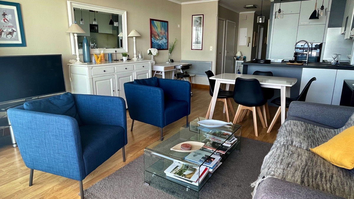 Schöne 2-Zimmer-Wohnung in der Nähe der Avenue Lajarrige und ihrer Geschäfte. Diese sehr angenehme Vermietung bietet Ihnen für Ihren Urlaub ein schönes Wohnzimmer mit Zugang zu einer Terrasse mit Meerblick - US-Küche (Backofen, Kühl- / Gefrierschrank, Mikrowelle, Induktionskochfeld, Dunstabzugshaube, Geschirrspüler, Nespresso), Konsole oder Tisch für 6 Personen - WC ind. - Duschraum mit italienischer Dusche (Waschtrockner) erneuert - Schlafzimmer Nr. 1 mit Bett 140/190 + Schrank / Kleiderschrank offen zur hinteren Terrasse - Schlafzimmer Nr. 2 mit Bett 160/200 + TV und Schrank / Kleiderschrank mit Blick auf die hintere Terrasse. Kleine Haustiere erlaubt.