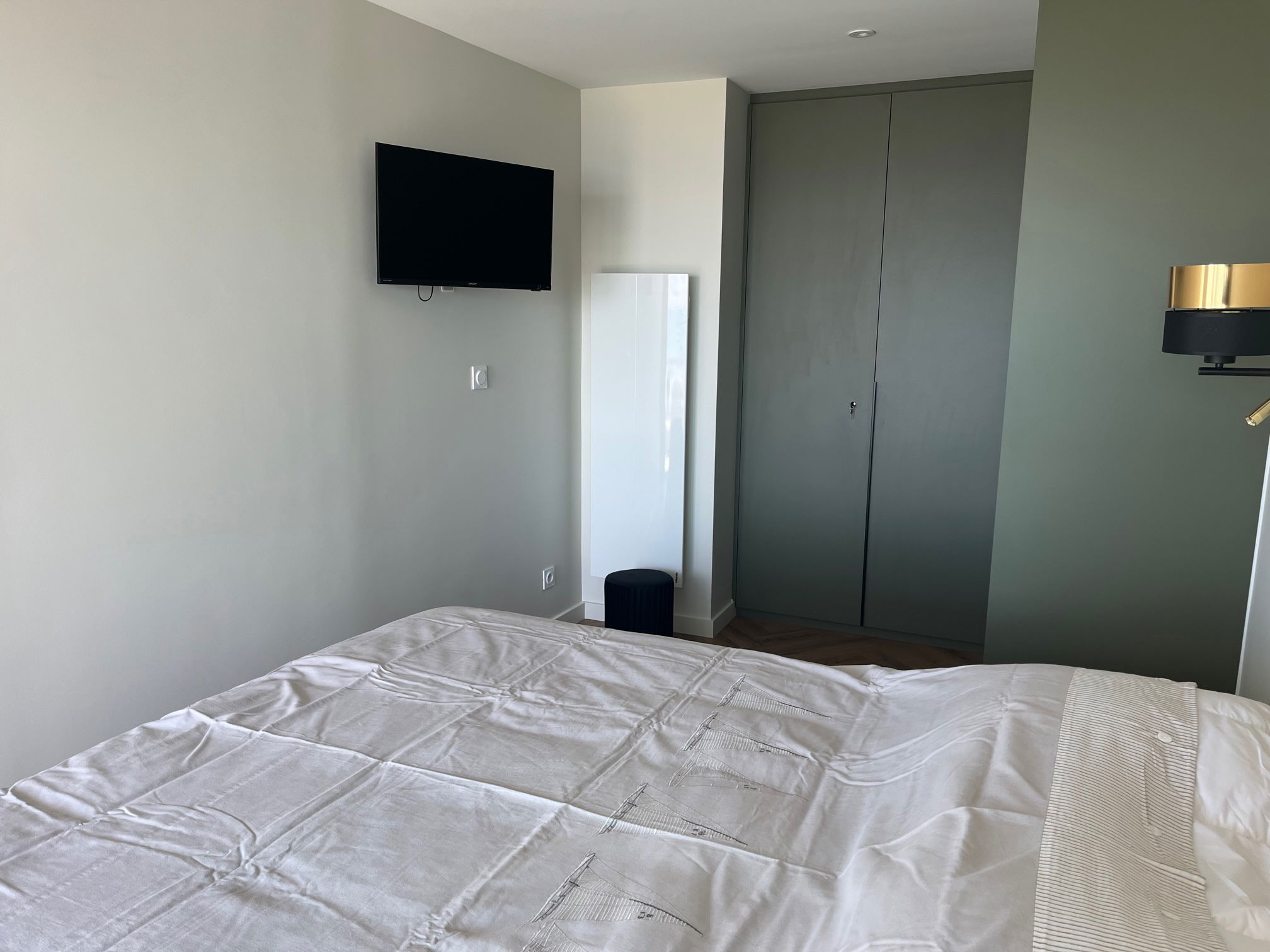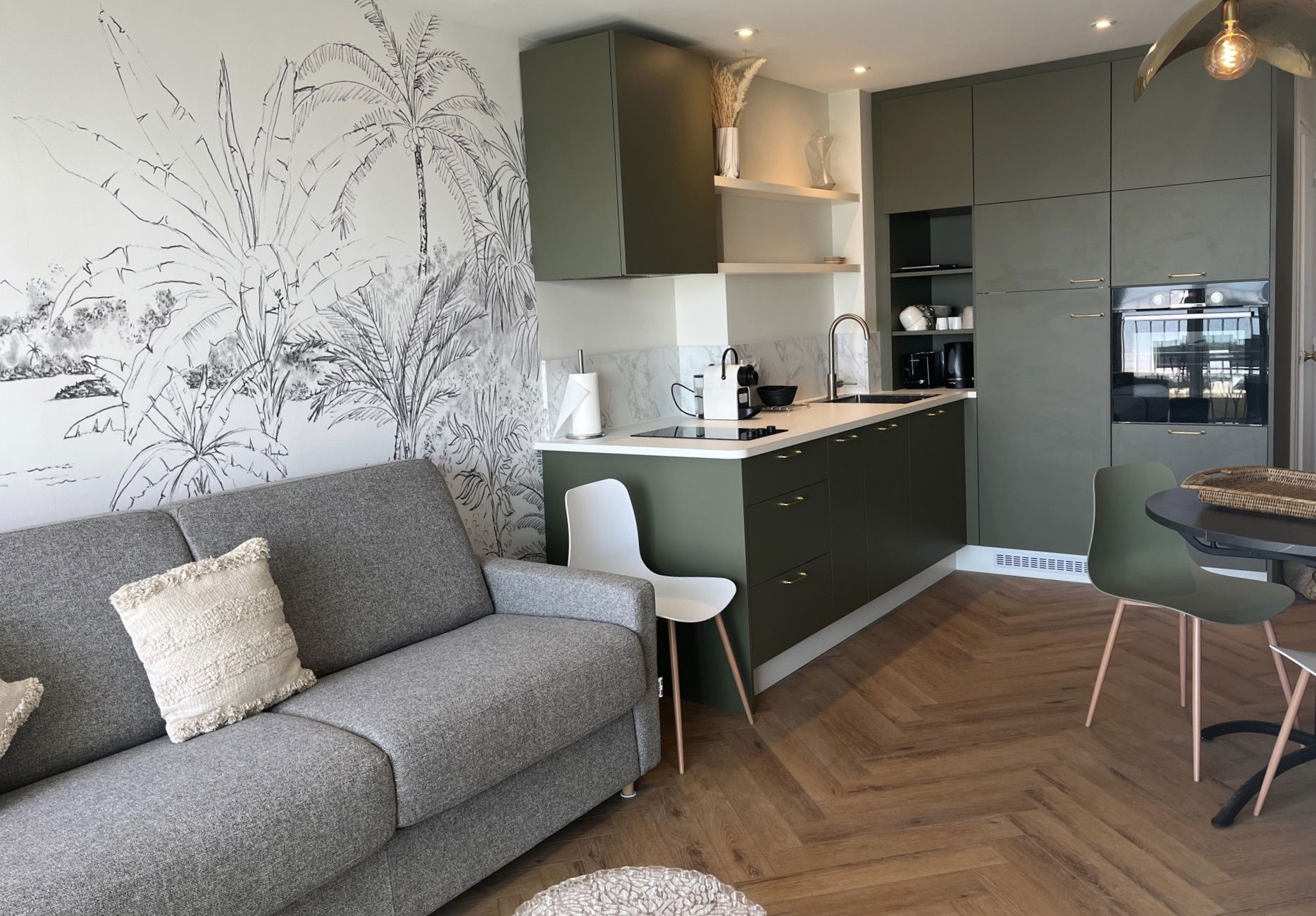 Ideal gelegen, nahe der Avenue de Gaulle (Haupteinkaufsstraße), dem Markt und dem Strand, ist dieses komplett renovierte Apartment mit großartigen Annehmlichkeiten perfekt für einen Aufenthalt in La Baule. Eingang mit Stauraum (Waschmaschine) und Schrank/Garderobe - Schönes, hübsch eingerichtetes Wohnzimmer mit Zugang zur Doppelterrasse mit Meerblick (Schlafsofa 160/190, Flachbildfernseher) - Offene Küche mit Backofen, Kühl-/Gefrierschrank, Mikrowelle, Geschirrspüler für 6 Personen Gedecke, 2-Flammen-Herd, Dunstabzugshaube, Nespresso - Schlafzimmer mit Blick auf das Meer und Zugang zur Terrasse mit 160/190-Bett, TV, Schrank/Garderobe - Duschraum mit WC. Glasfaser-Internet. Kostenlose Parkplätze bei der Wohnanlage.