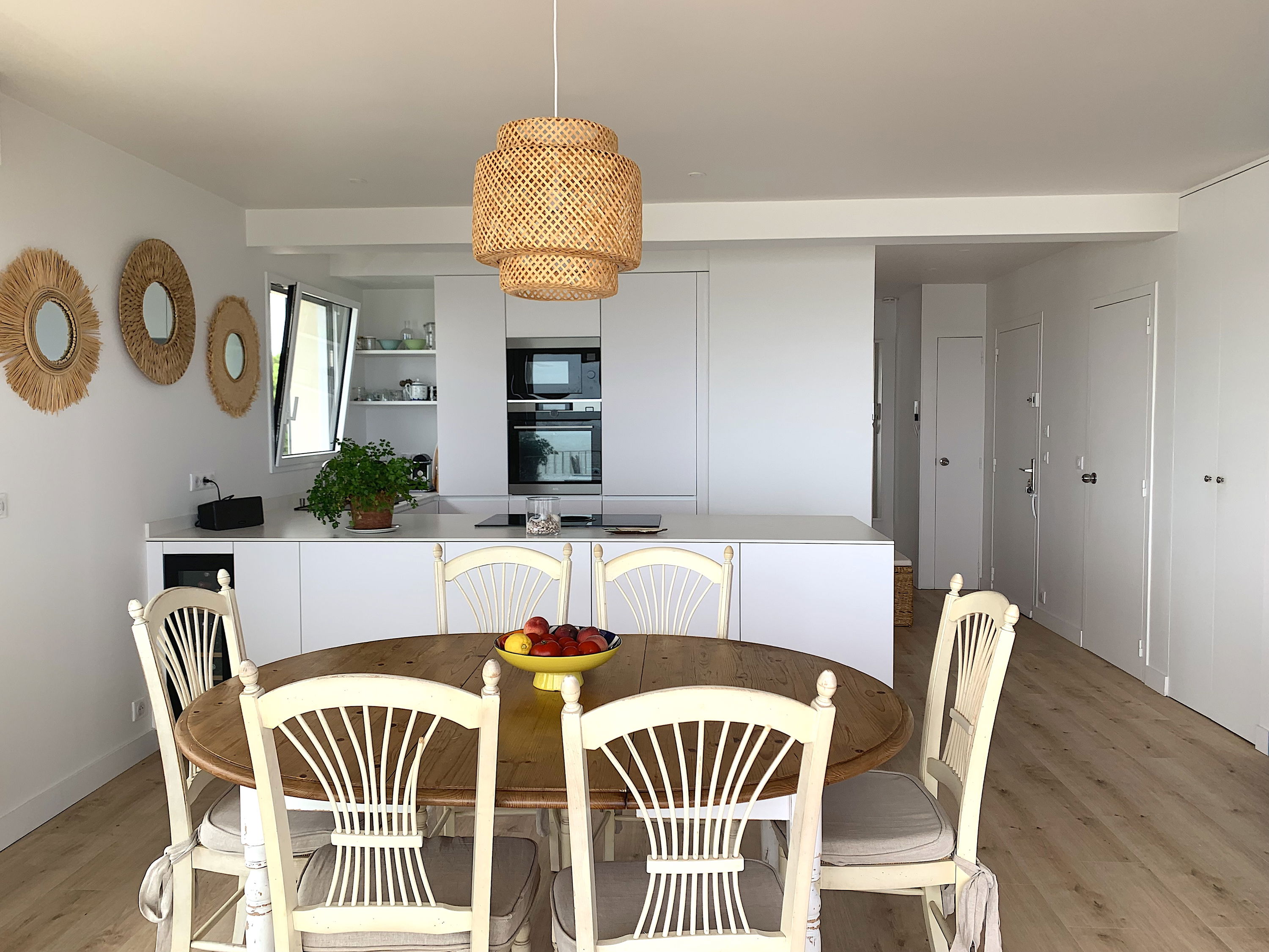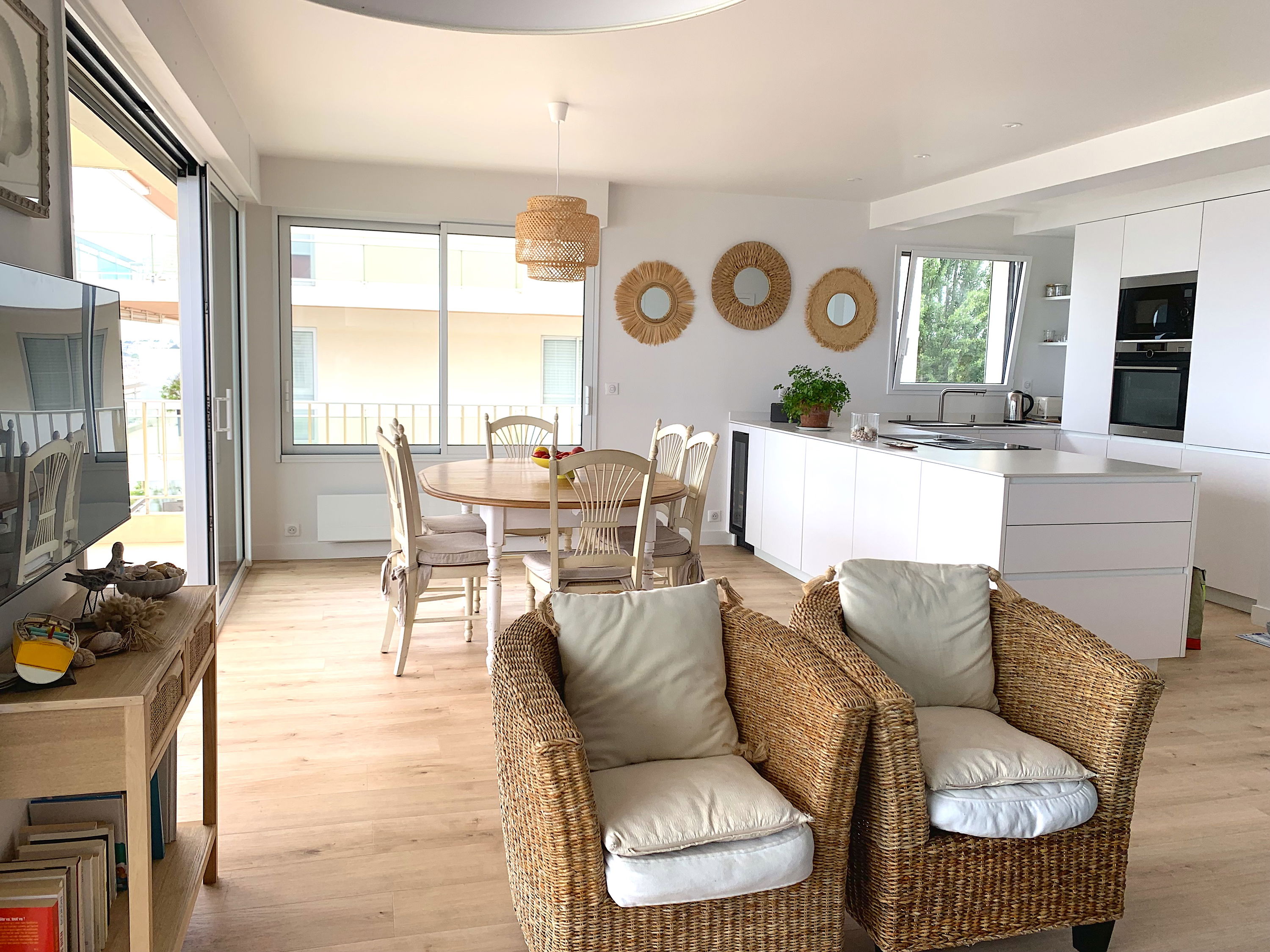 Eingang mit Schrank/Kleiderschrank – Wohnzimmer bestehend aus einer offenen und ausgestatteten Küche (Induktionskochfeld, zentrale Dunstabzugshaube, Kühl-/Gefrierschrank, Backofen, Mikrowelle, Geschirrspüler, Nespresso, Toaster und Wasserkocher, kleiner Weinkeller) und Wohnzimmer mit Flachbildfernseher, 160/200-Schlafsofa und WLAN-Verbindung - Schlafzimmer 1 (klein) mit 2 90/200-Schrankbetten und Kleiderschrank - Badezimmer mit Handtuchtrockner und Waschtrockner - Schlafzimmer 2 mit 160/160-Bett 200 und Schrank/Kleiderschrank - separates WC.