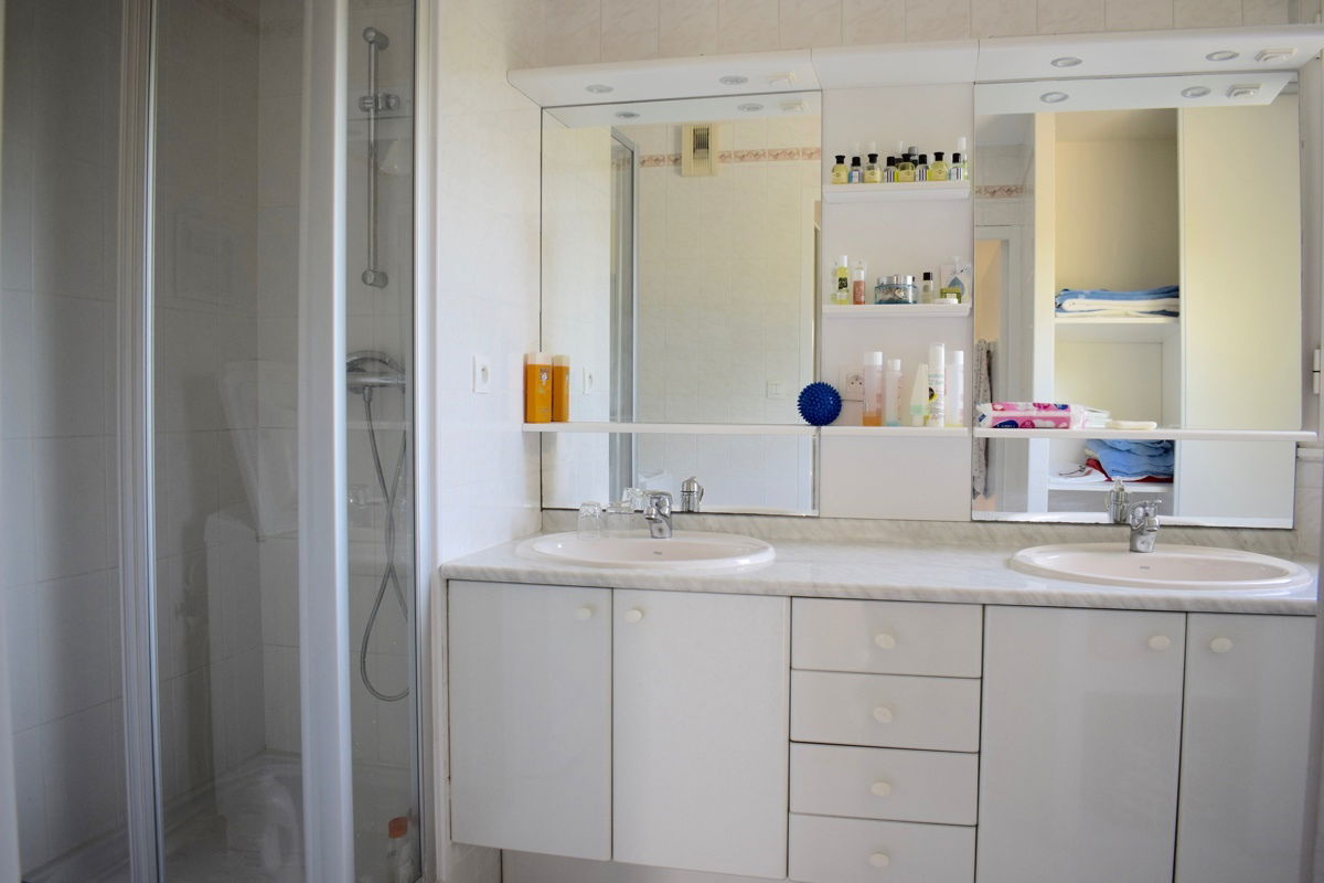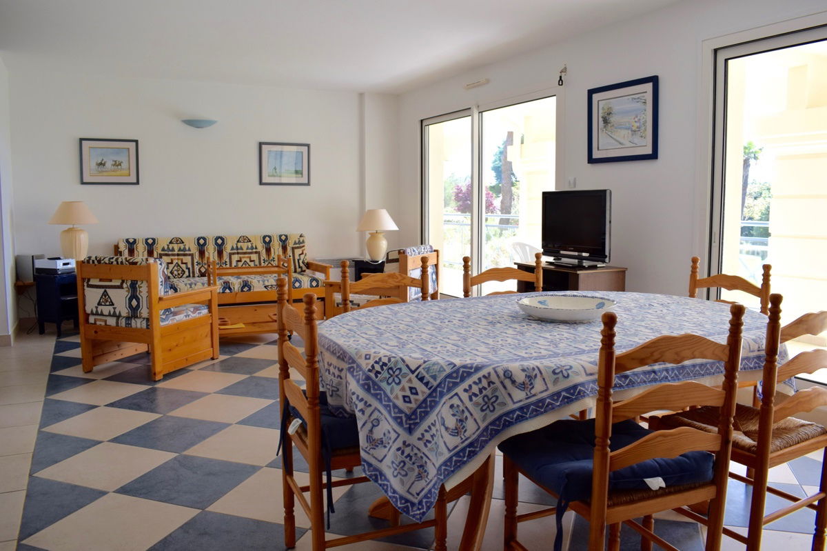 A 400 m vom meer - Apartment von 85 m2 in residenz mit pool - sehr schön und hell, bestehend aus : Eingang (schrank) - Wohnzimmer mit zugang auf die terrasse von 35 m2 auf park Süd-West (HD - FERNSEHER- sofa - 2 sessel) - amerikanische Küche (spülmaschine- kühlschrank mit gefrierfach - 4-platten herd, halogen - herd) - helles Schlafzimmer n°1 mit wandschrank (1 bett für 2 personen) - Schlafzimmer n°2 mit wandschrank (1 bett für 1 personen + 2 etagenbetten 1 person) - Badezimmer (Waschmaschine + 1 dusche und 2 waschbecken auf möbel) - 2 WC - Parkplatz im freien. Sommersaison mieten an zwei wochen werden bevorzugt. Registrierungsnummer : 4405500032499