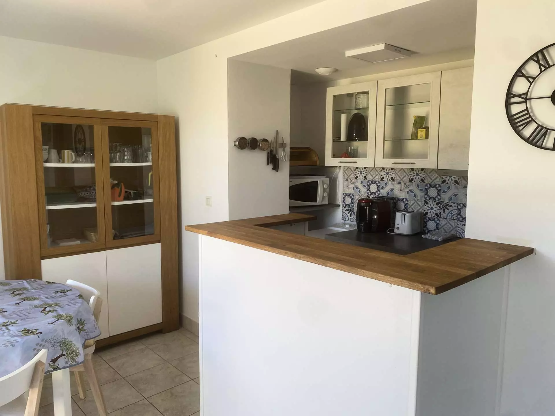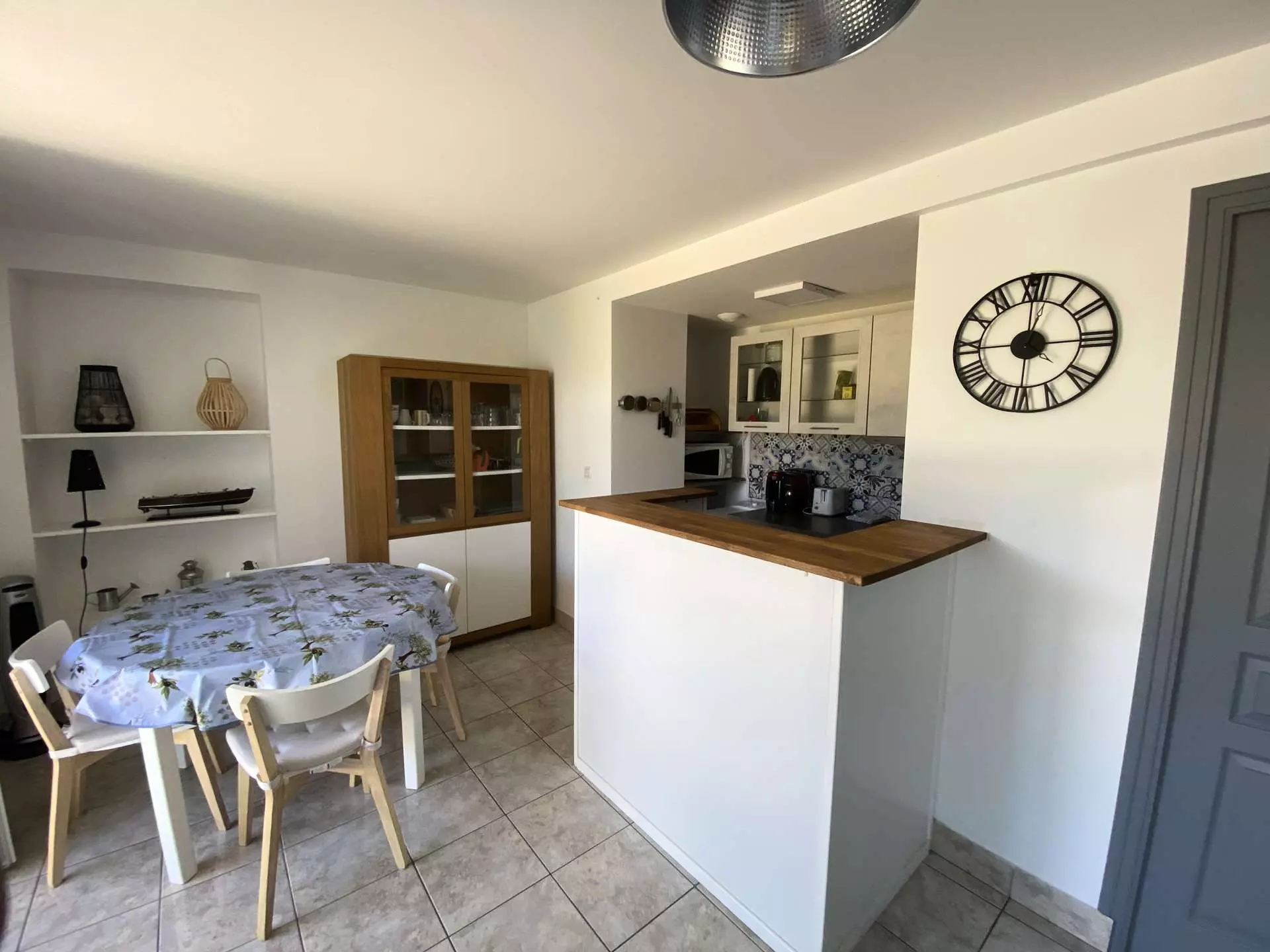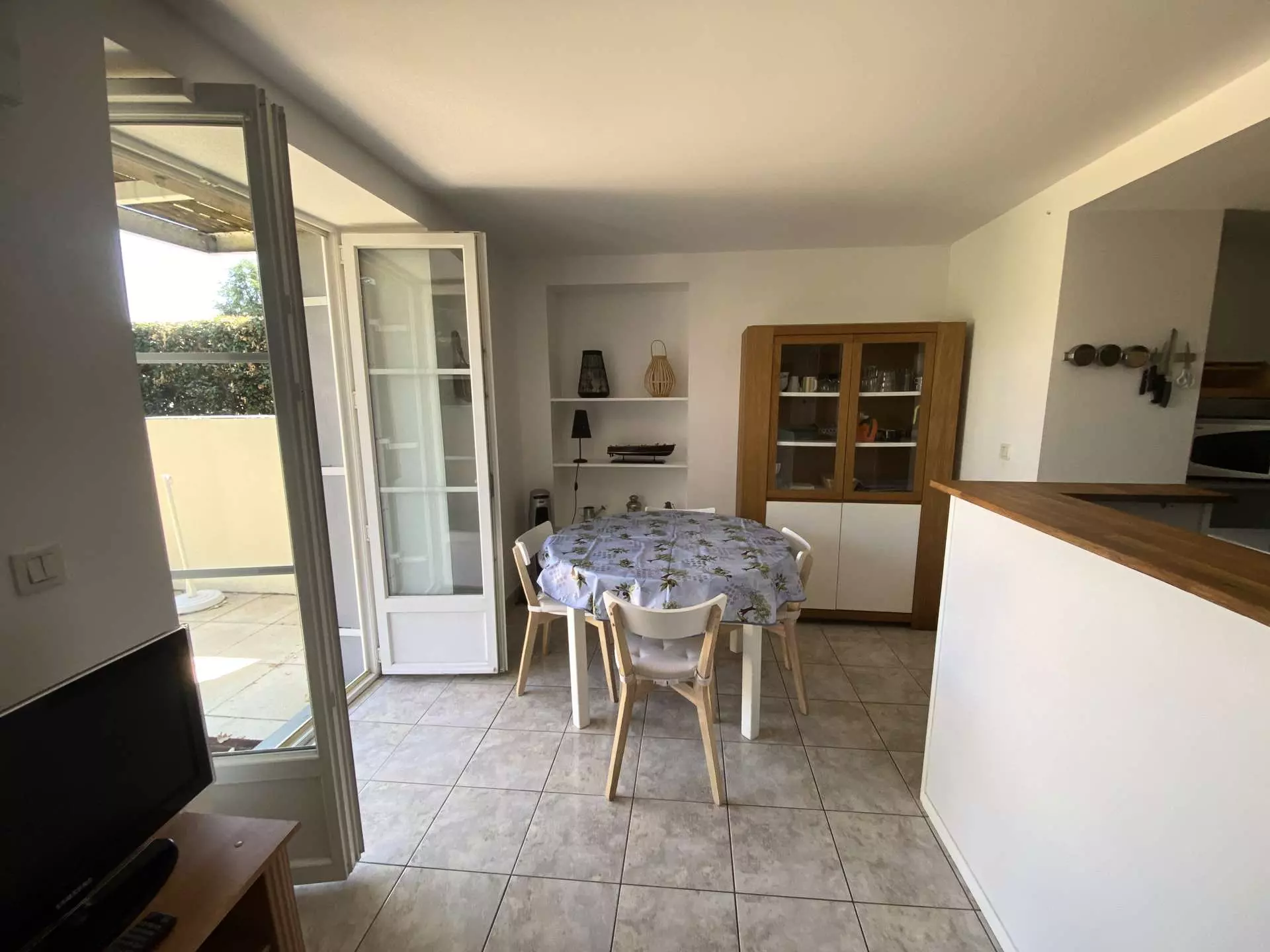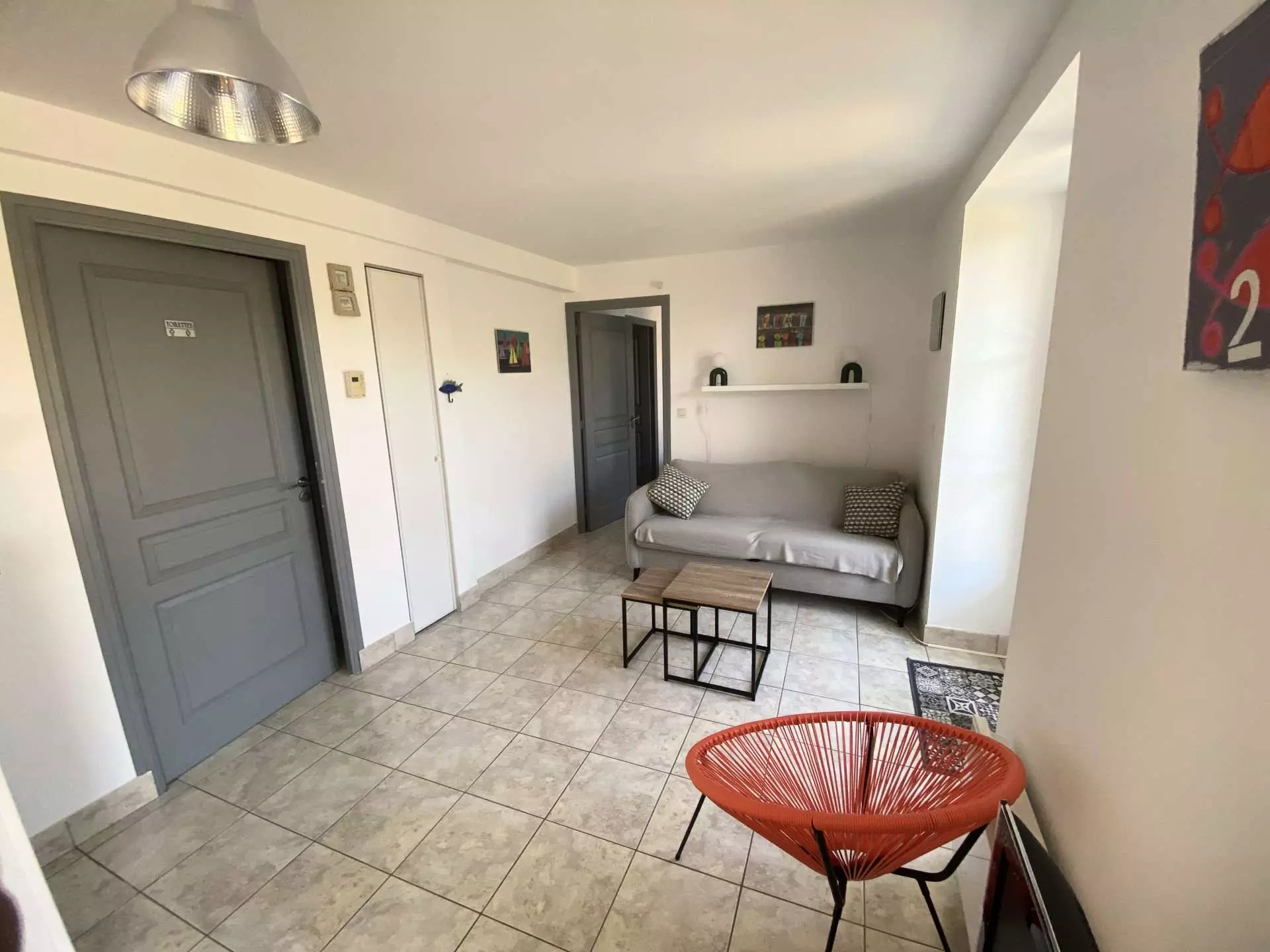 Im Erdgeschoss eines angenehmen Wohnhauses befindet sich diese ca. 36 m² große Wohnung in gutem Zustand. Sie bietet ein Wohnzimmer mit Schlafsofa, einen Küchenbereich mit Waschmaschine und Geschirrspüler, ein Schlafzimmer mit Zugang zur Terrasse und einem Doppelbett (140 cm) sowie ein WC.