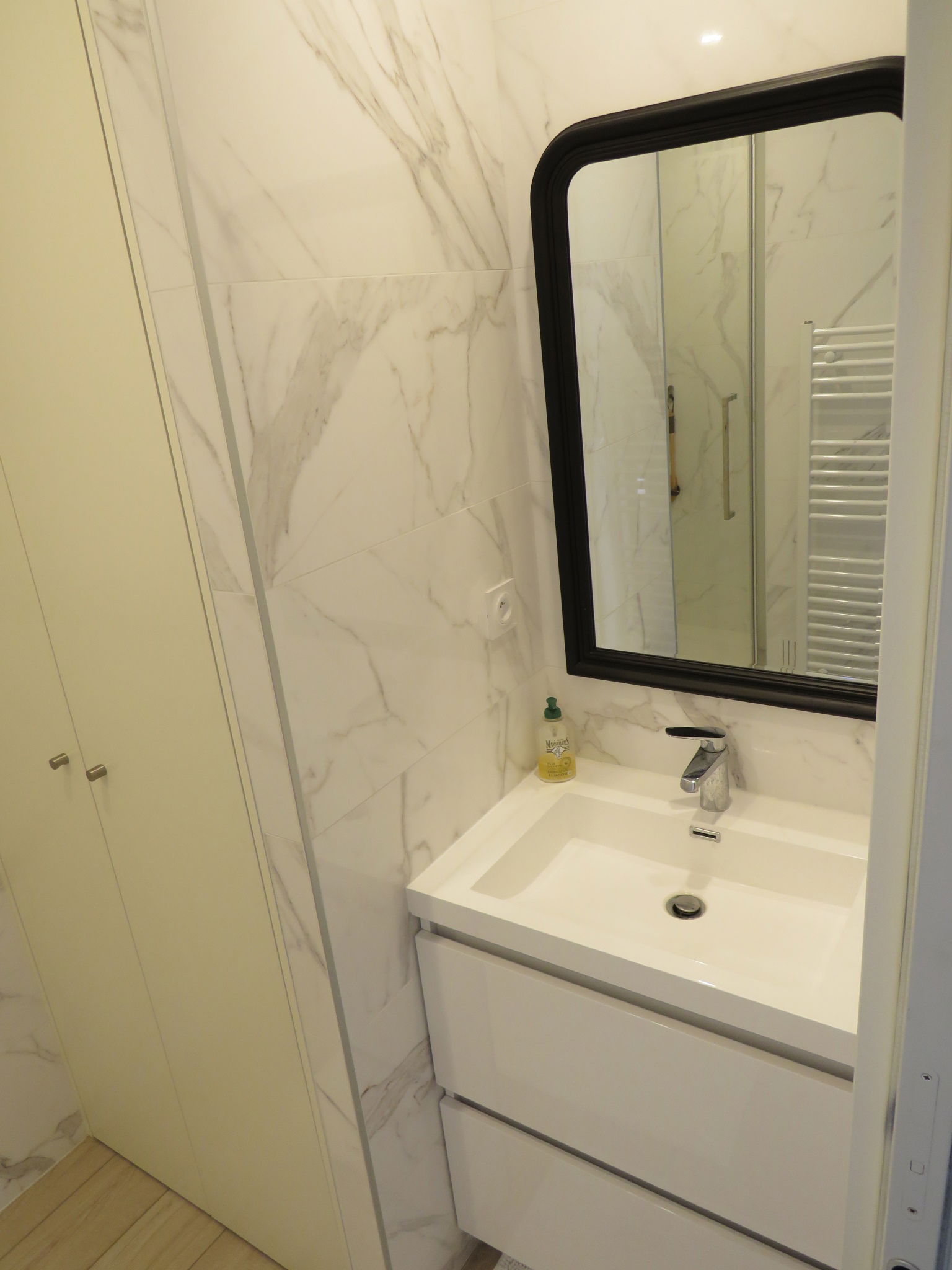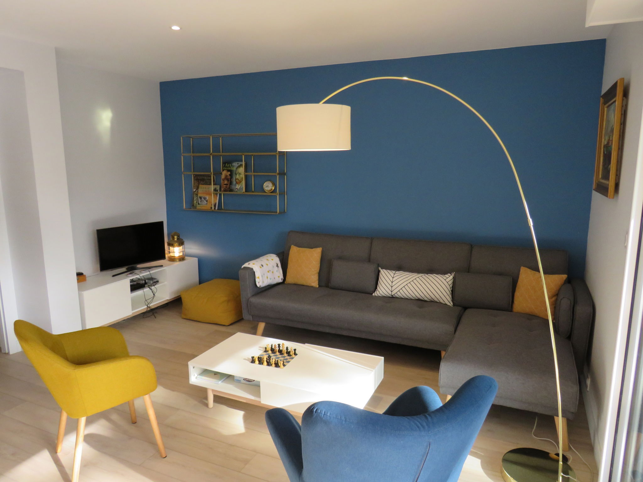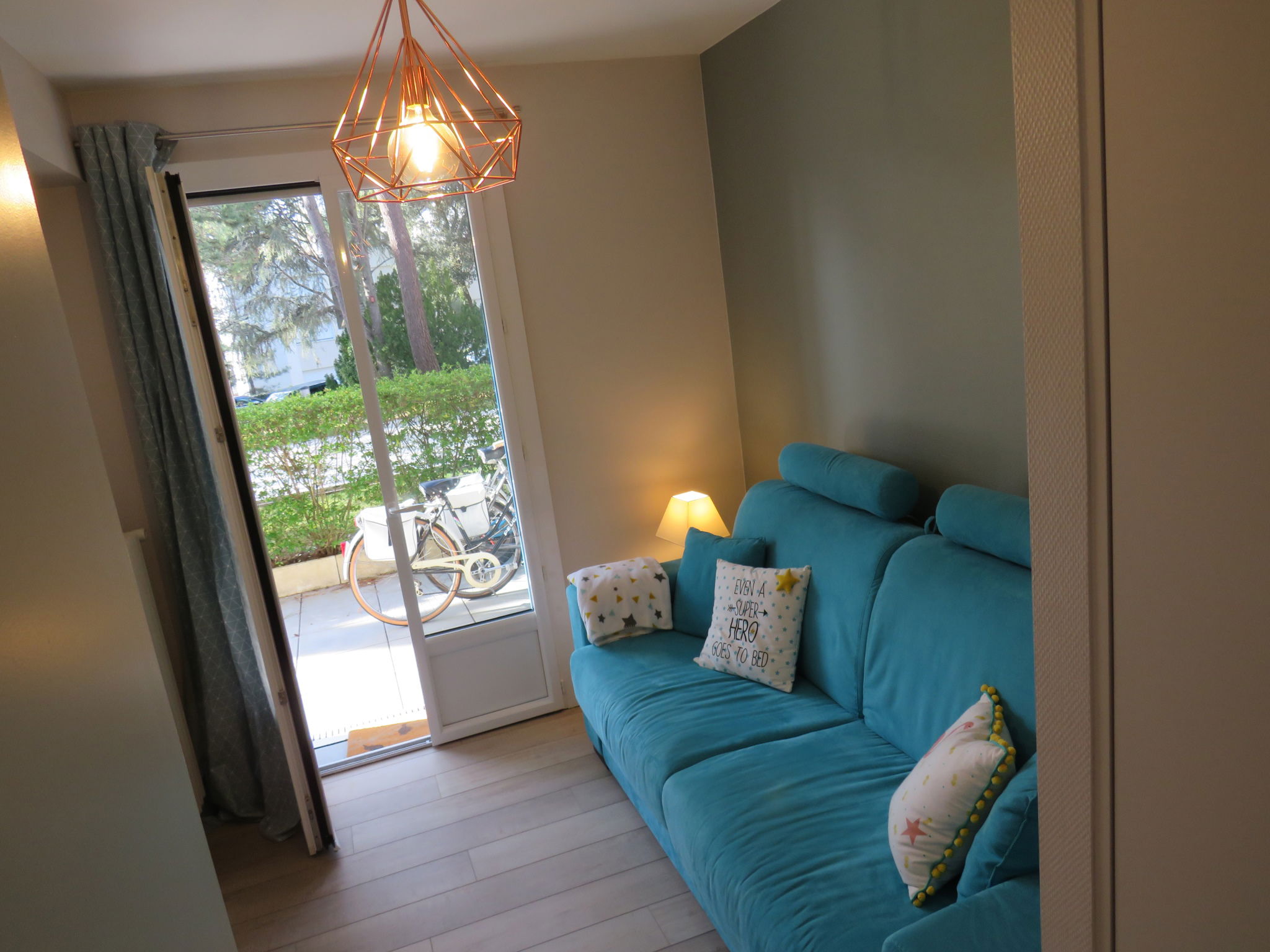 Wir bieten Ihnen diese kürzlich renovierte, moderne Wohnung im Erdgeschoss in einer ruhigen und grünen Gegend an, 600 m vom Strand und 800 m von den Geschäften der Avenue de Gaulle entfernt.