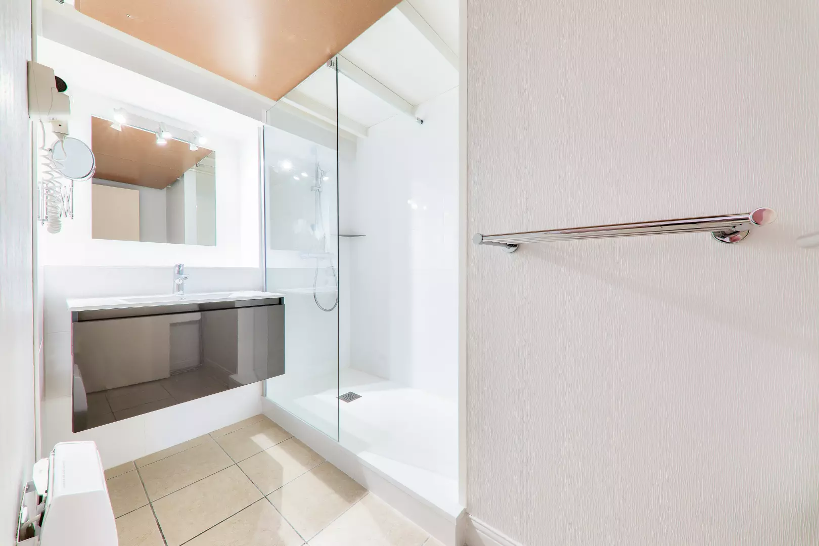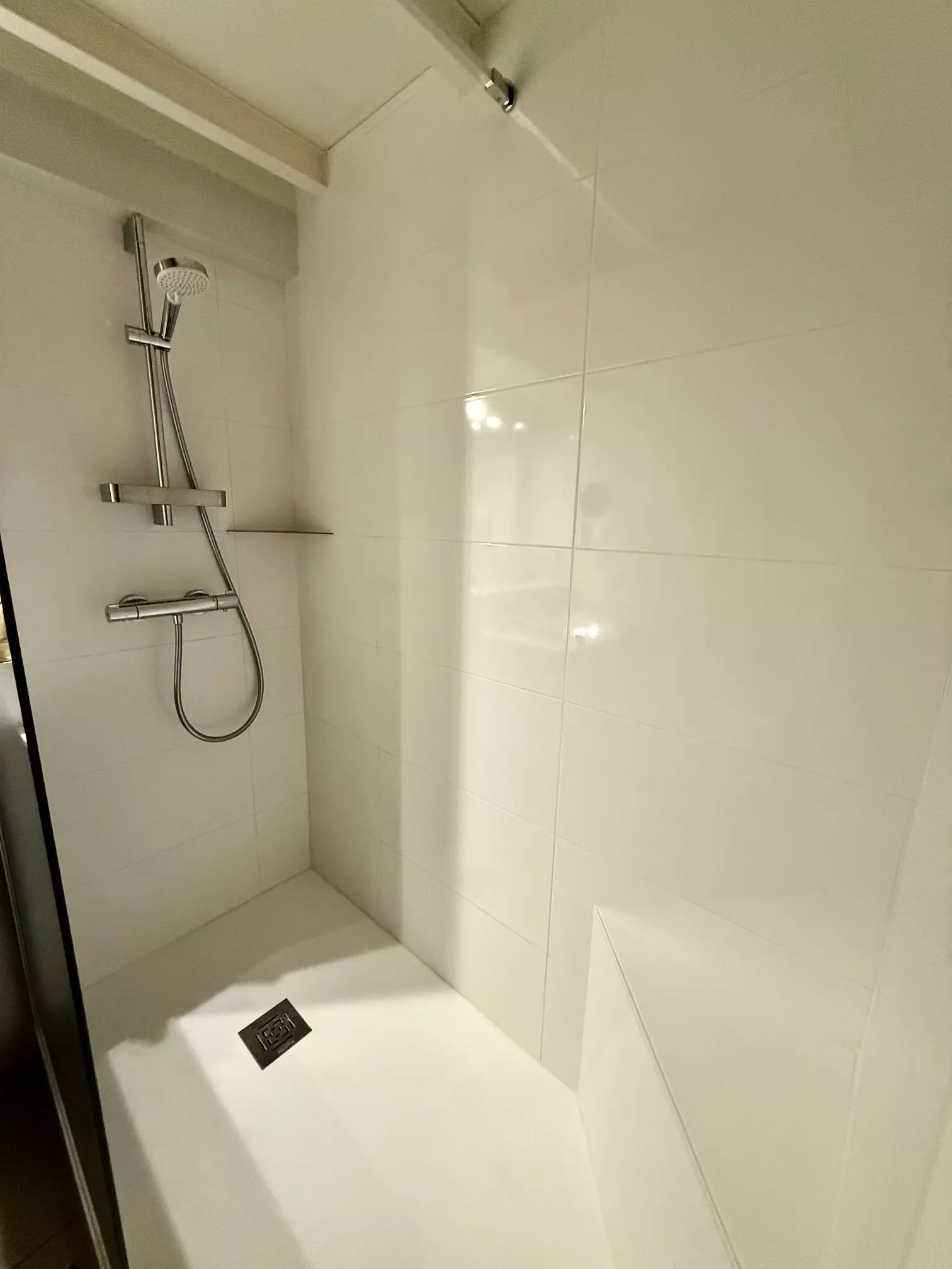 Badezimmerzusammensetzung: ebenerdige Dusche.