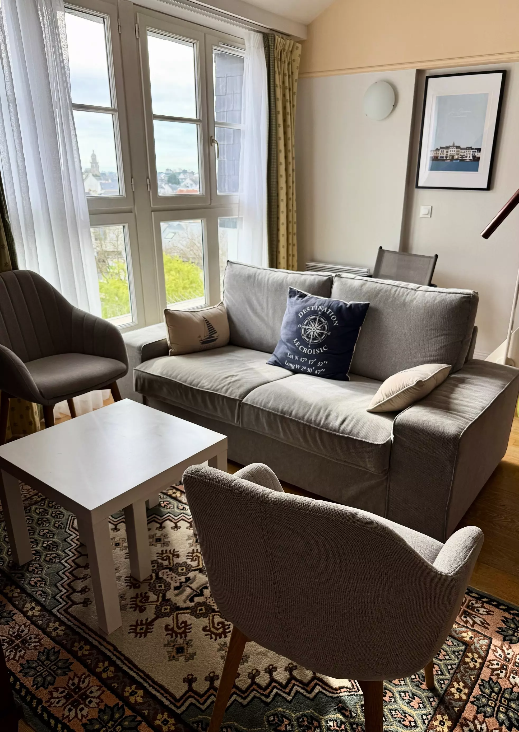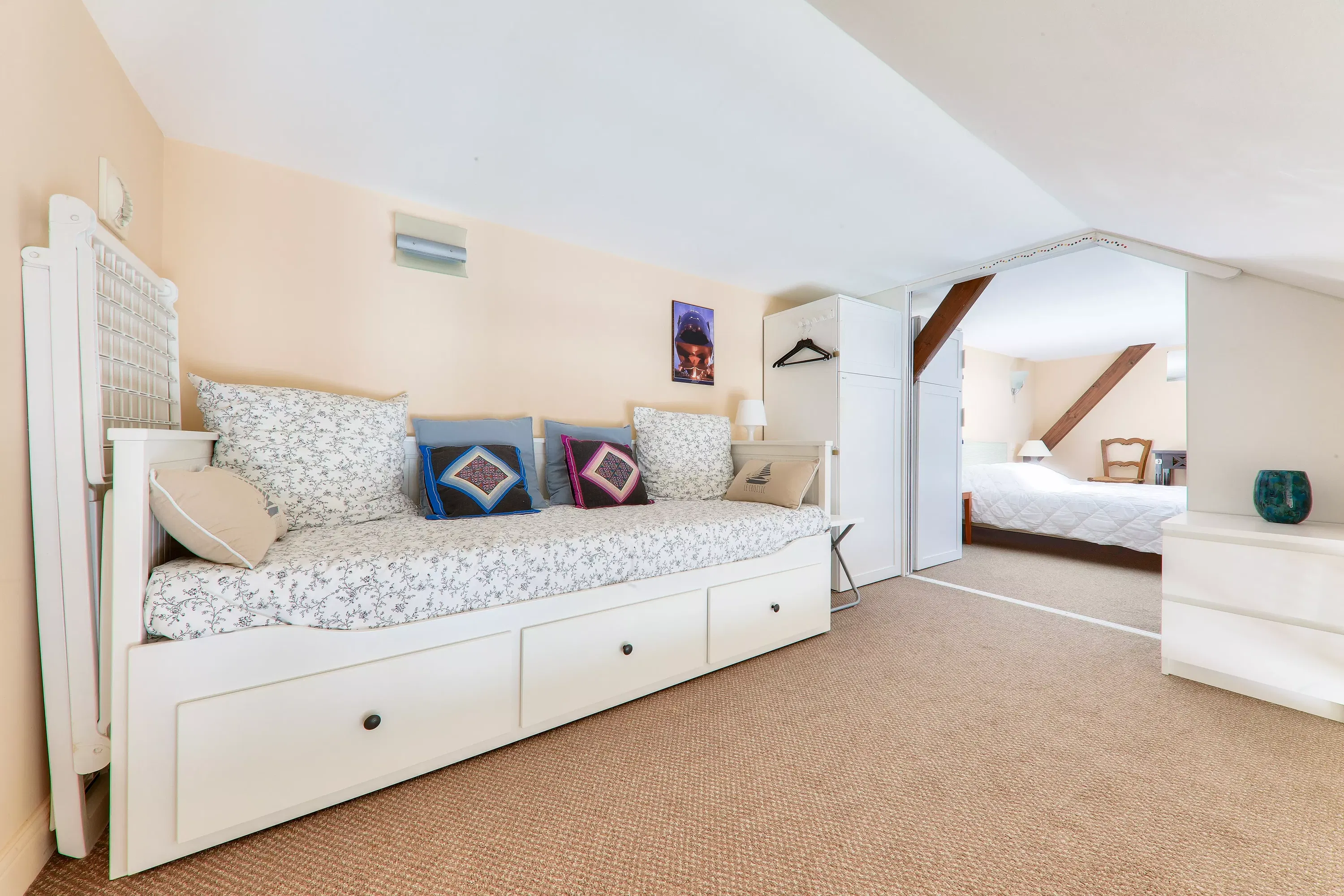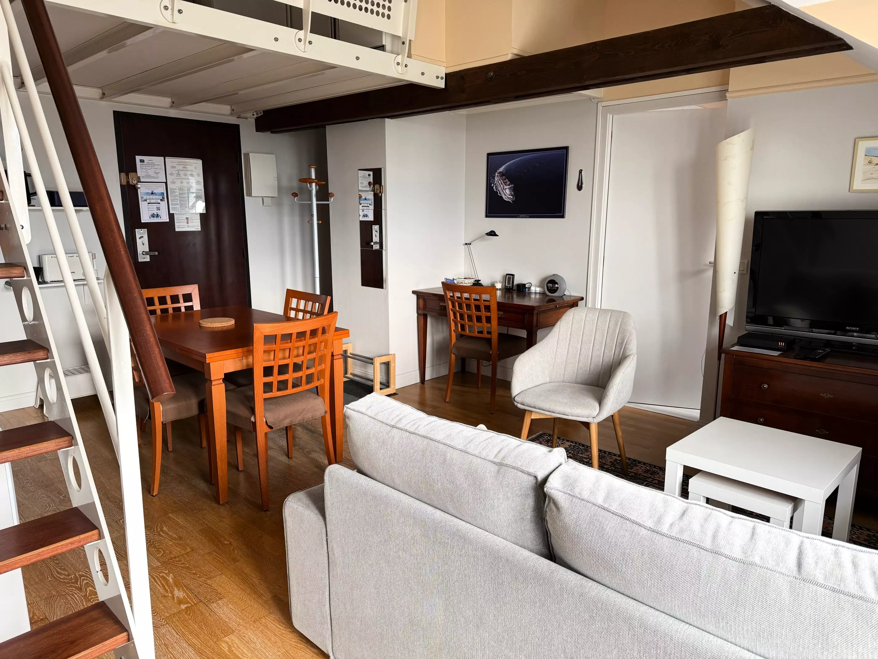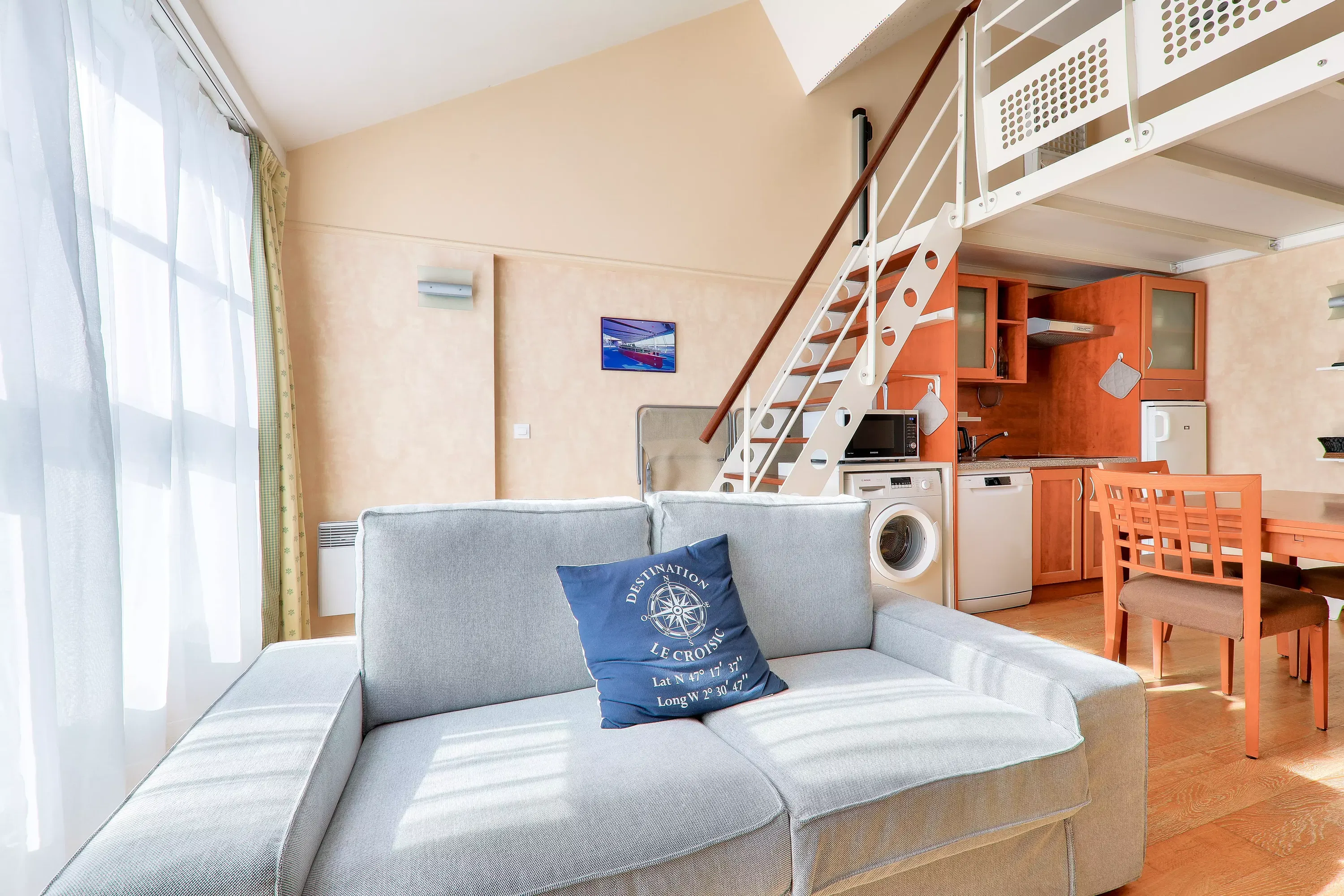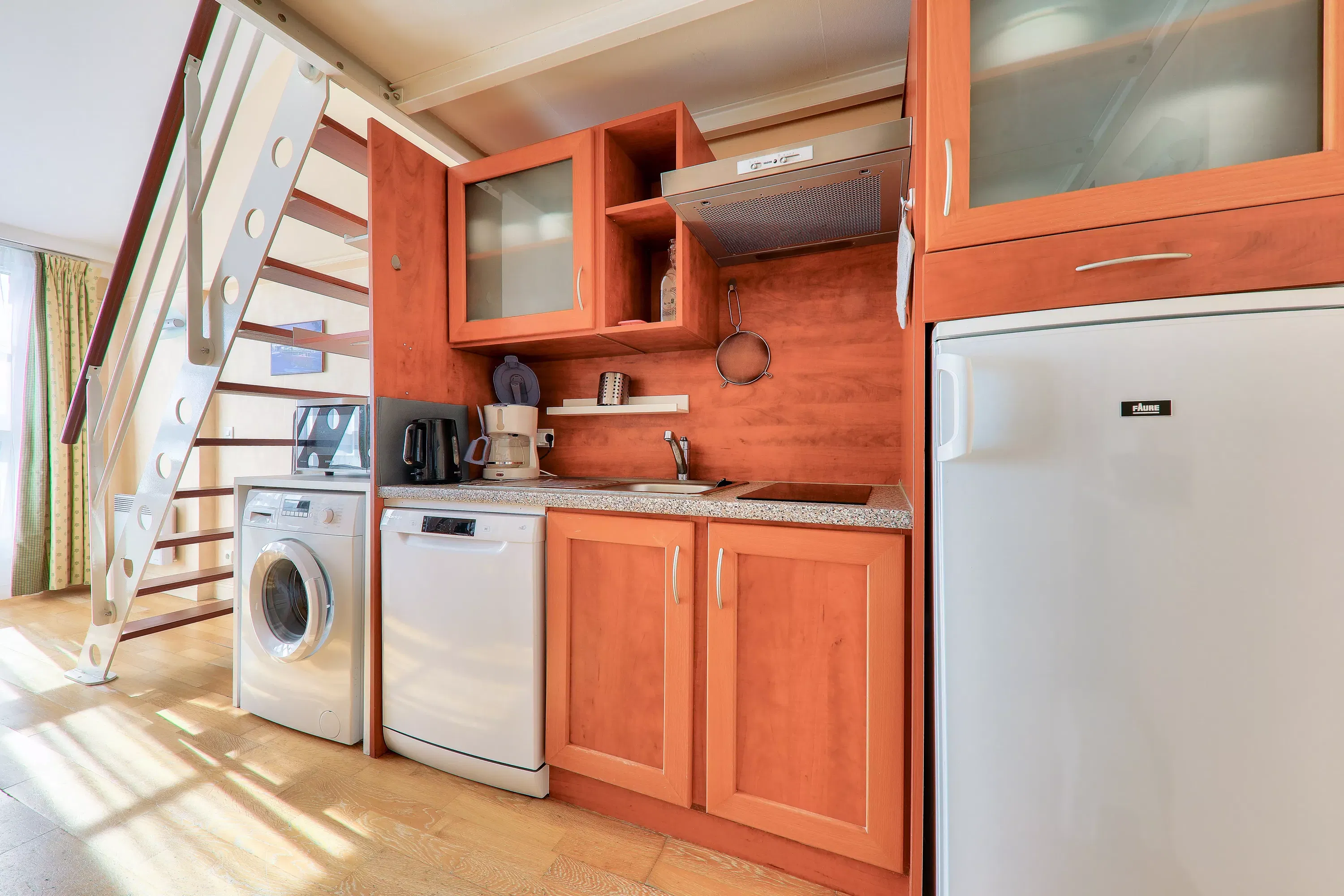 Ihre Ferienunterkunft umfasst: 1 Wohnzimmer, 1 Zwischengeschoss, 1 Küche, 1 Schlafzimmer, 1 Badezimmer und 1 Parkplatz.